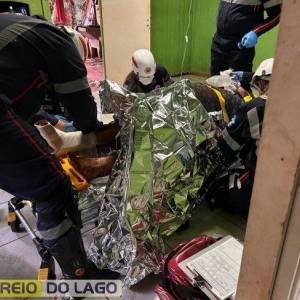 O piso cedeu inesperadamente, abrindo o buraco e provocando a queda. Por sorte, familiares estavam presentes na residência no momento do acidente, o que permitiu o acionamento rápido dos serviços de emergência.
