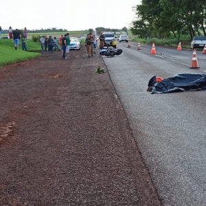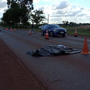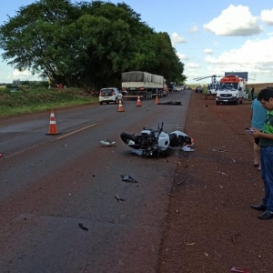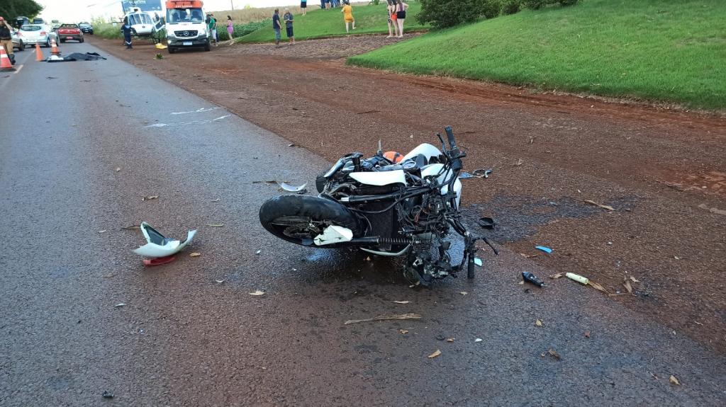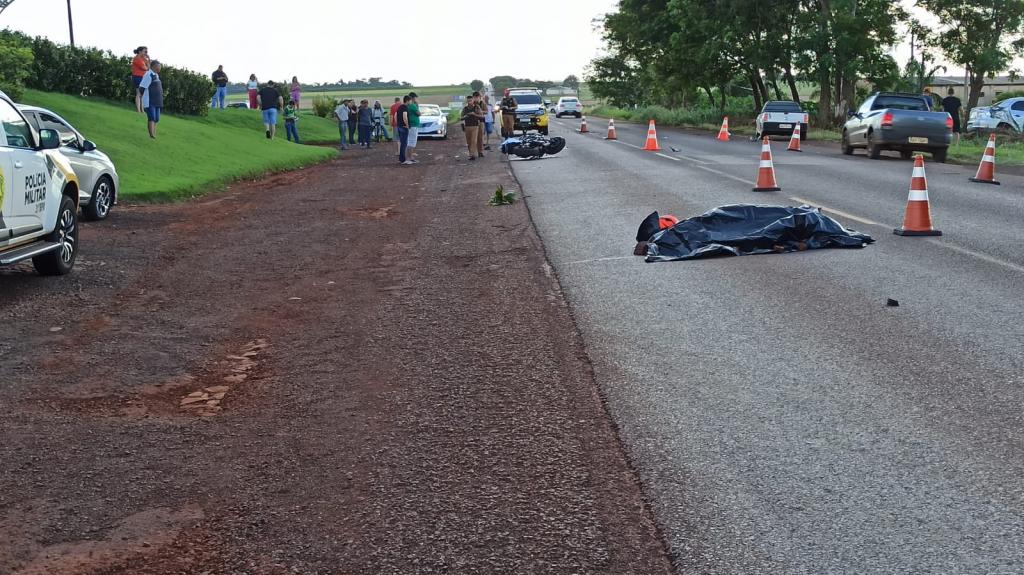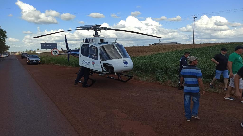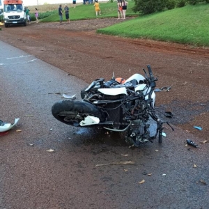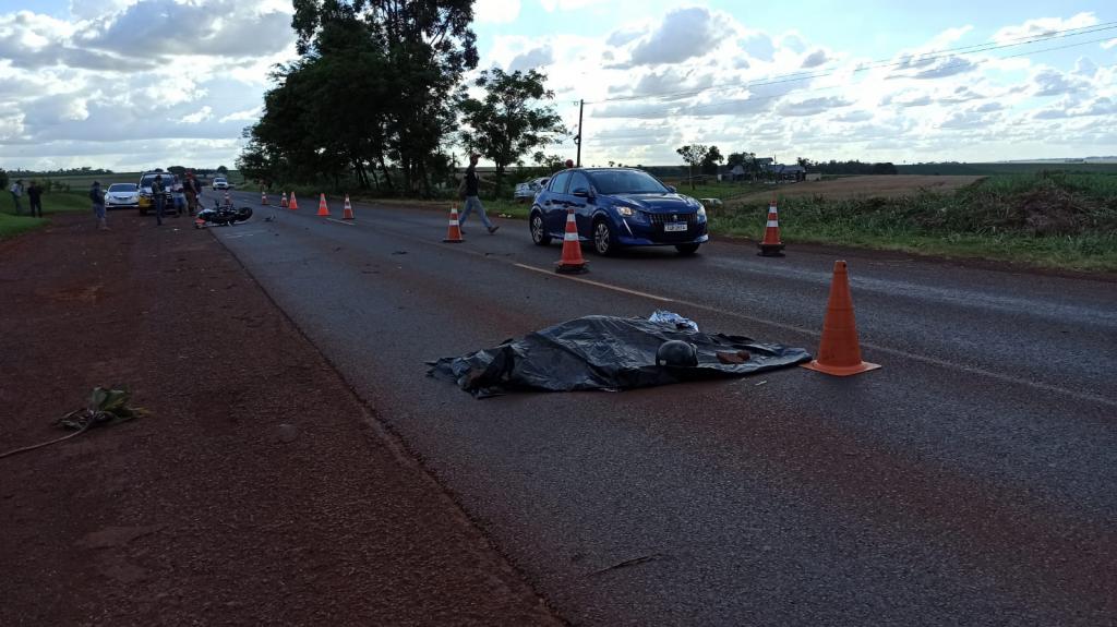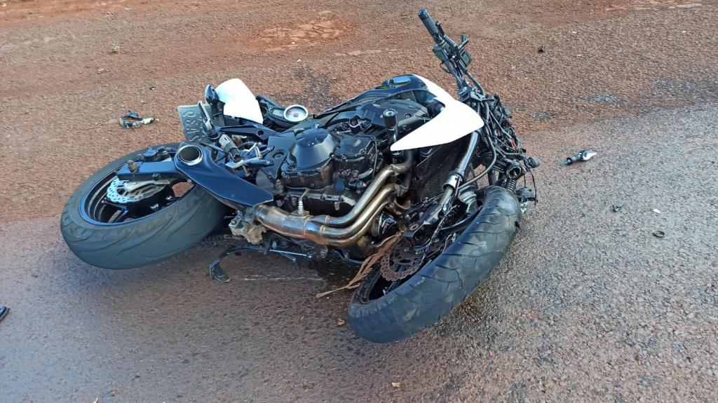 O motociclista trafegava no sentido a cidade de Assis Chateaubriand e não tem informação oficiais em que sentido que o Voyage seguia quando aconteceu a colisão que atingiu a lateral traseira do carro.