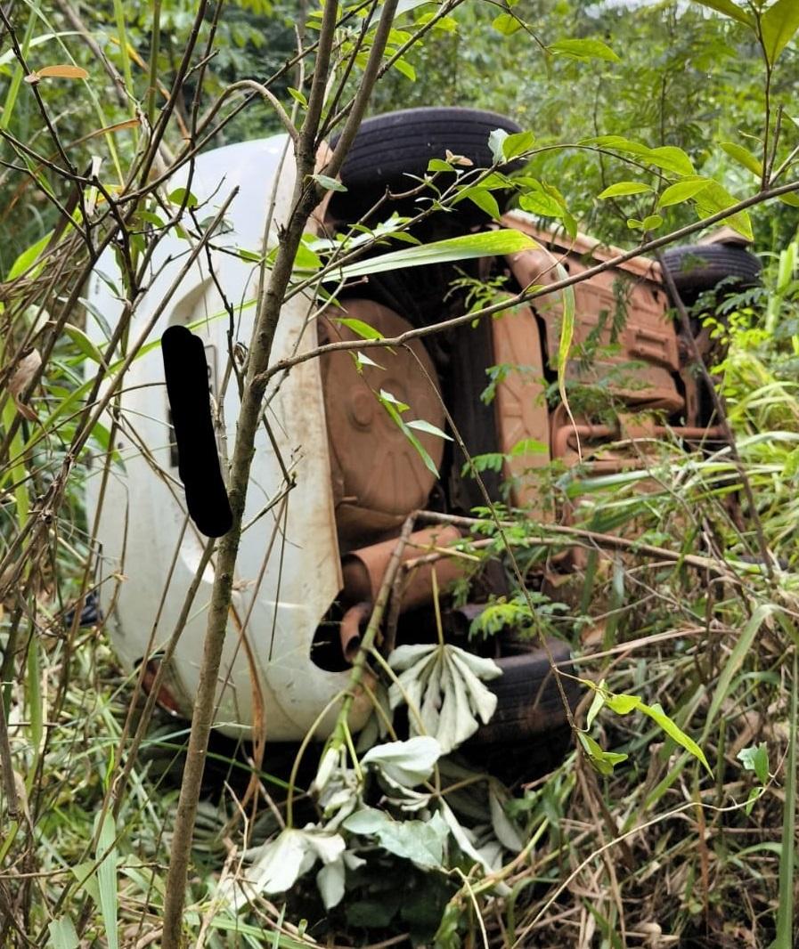 Na PR 239, município de Iracema do Oeste, uma mulher de 66 anos sofreu um acidente de trânsito. O veículo que ela conduzia capotou e, apesar do grande susto, ela não se feriu.