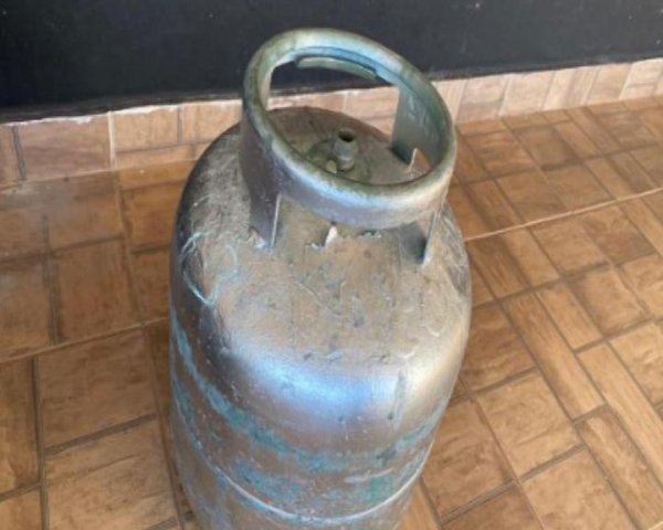 Enquanto o dono da casa conversava com o homem, a mulher pegou o botijão de gás da cozinha e escondeu nos fundos da casa.