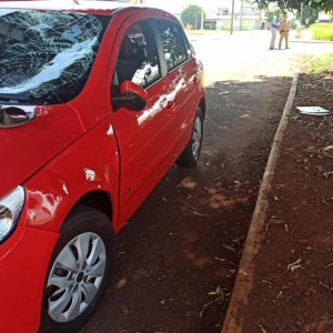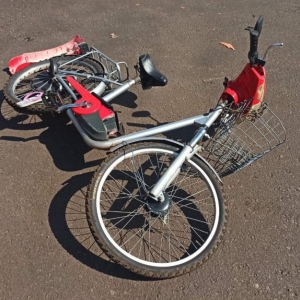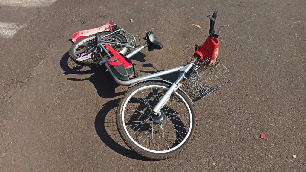 O Volkswagen Gol com placas de Toledo colidiu com uma ciclista de 52 anos que tinha como passageira na bicicleta elétrica uma criança de 4 anos de idade.