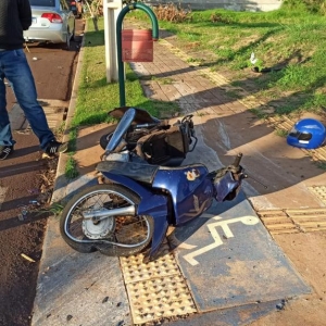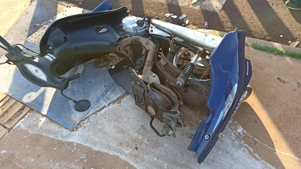 O carro trafegava pela rua Américo Sartori e a moto seguia pela rua Matias Fuhr e no cruzamento das vias aconteceu a batida.