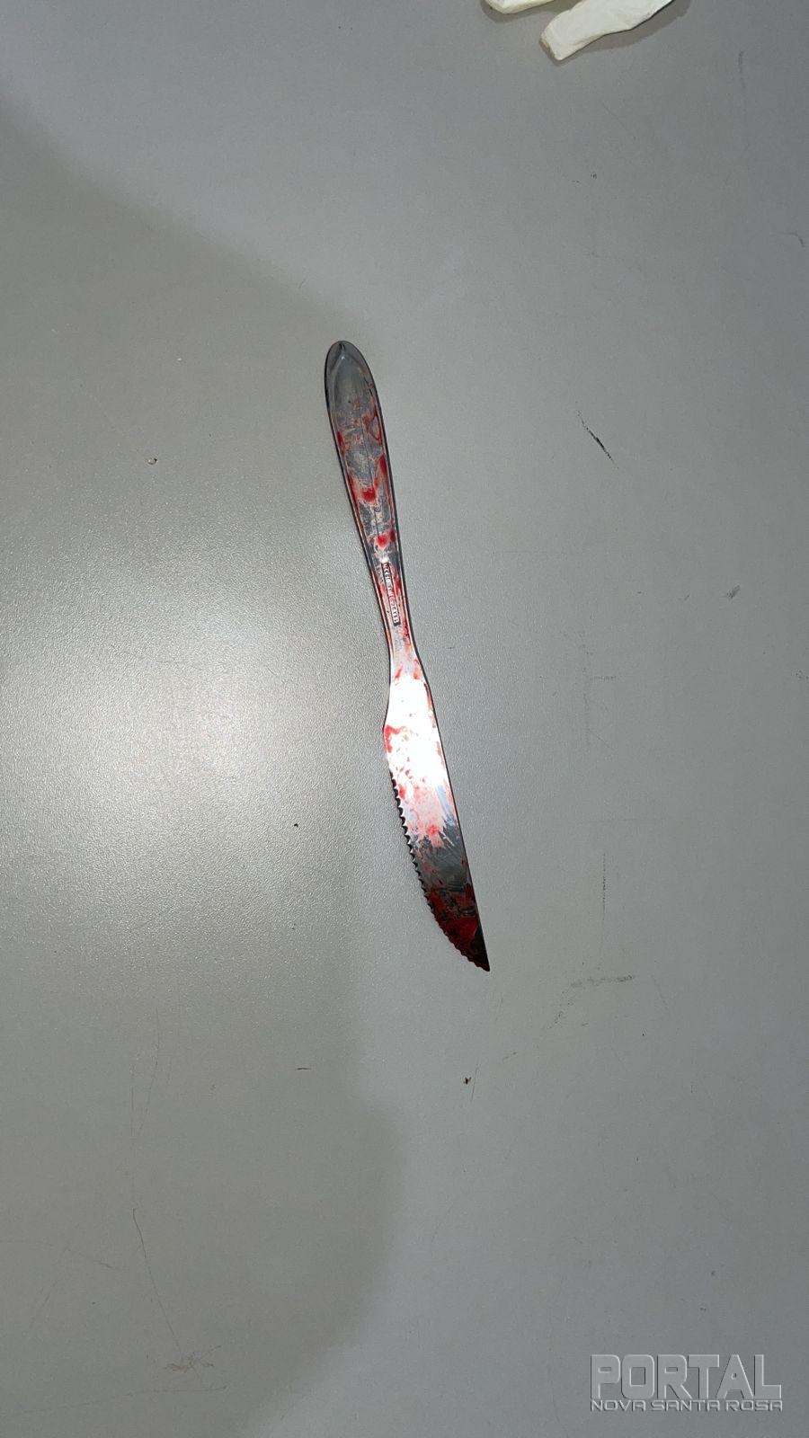 A faca utilizada pelo autor foi apreendida pela equipe policial militar e entregue na 20ª Subdivisão Policial de Toledo para providências da polícia judiciária.