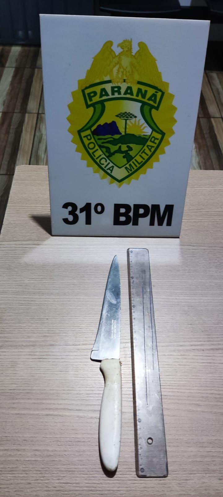 A faca utilizada foi apreendida com aproximadamente 16,5cm de lâmina.