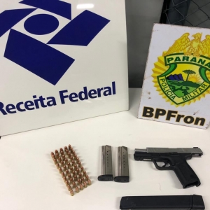 Uma mulher de 37 anos foi presa na noite de quinta-feira (4), transportando arma de uso restrito, carregadores e munições em um ônibus, na BR 369, em Cascavel.