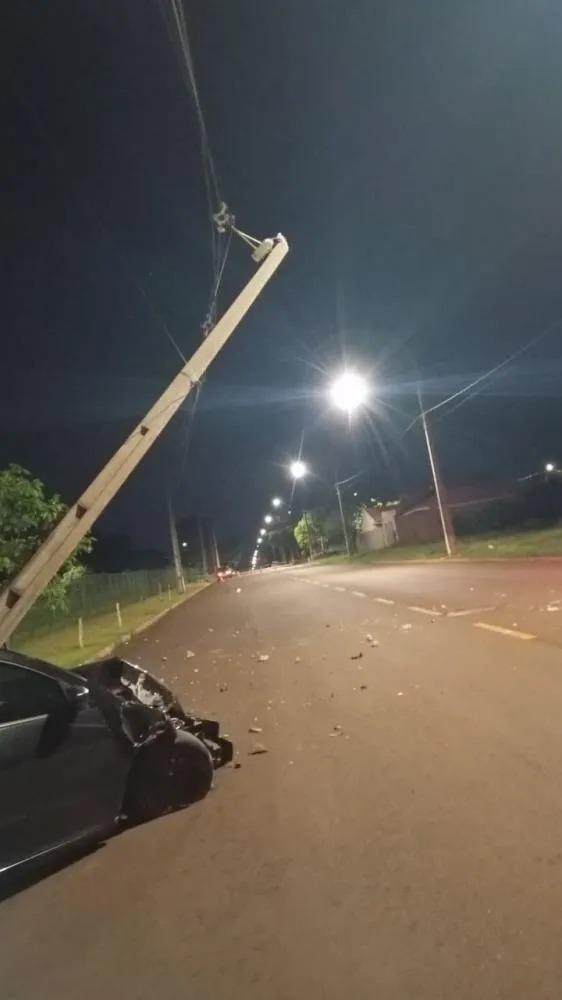 Na madrugada deste sábado (11), por volta das 00h05, a Polícia Militar de Palotina foi acionada para atender a uma ocorrência de acidente de trânsito. No local, foi constatado que um veículo VW/Gol 1.0, de cor preta, havia colidido violentamente contra um poste de alta tensão, resultando em danos significativos tanto ao automóvel quanto à estrutura pública.