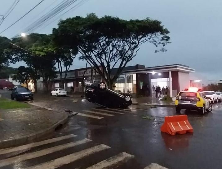 Um acidente de trânsito registrado na manhã desta quinta-feira (5), no centro de Cafelândia - cidade localizada na região de Cascavel - resultou no capotamento de um dos veículos envolvidos e mobilizou equipes de atendimento de emergência.