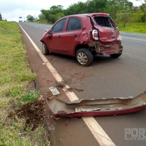 O motorista do veículo perdeu o controle da direção, saiu da pista e atingiu um barranco que divide as duas pistas da rodovia, deixando algumas peças do carro espalhadas pelo acostamento.