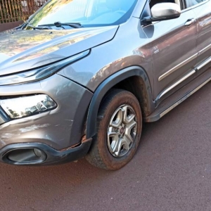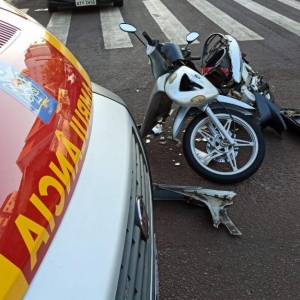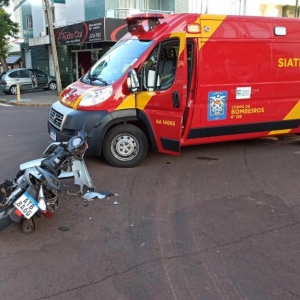 A batida envolveu uma moto e um Fiat Toro, sendo que aconteceu no cruzamento da rua Santos Dumont com rua Borges de Medeiros.