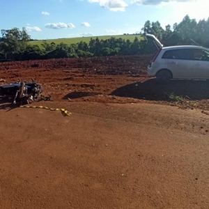 Um acidente grave entre uma moto e um carro foi registrado, na tarde de segunda-feira (25), em uma estrada rural entre a Comunidade Buê-Caé e o distrito de Boa Vista, em Toledo.