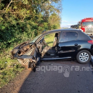 Um grave acidente de trânsito aconteceu na tarde desta segunda-feira (28), por volta das 17h, na BR-163, trecho da rodovia entre Marechal Cândido Rondon e Mercedes, proximidades da Mineradora Dalmina. Uma mulher ficou ferida na colisão que envolveu um veículo Peugeot 206 e um caminhão Atego.