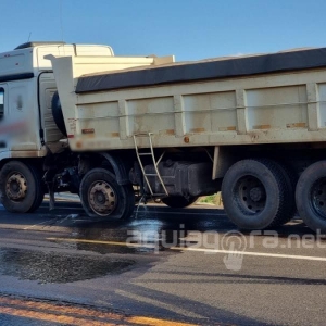Houve vazamento de combustível na pista. O motorista do caminhão não se feriu.