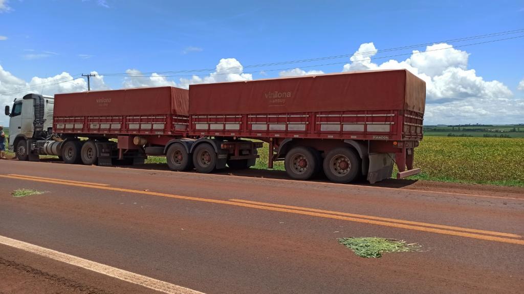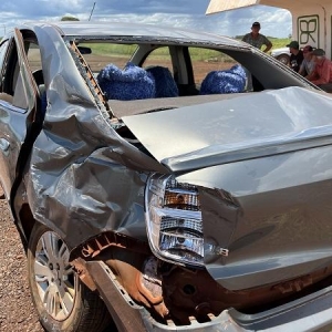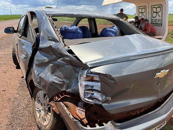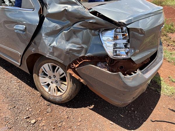 Um Chevrolet Cobal colidiu com uma carreta na tarde desta sexta-feira na rodovia PR-182 no distrito de Pérola Independente, nas proximidades do Biopark em Toledo.