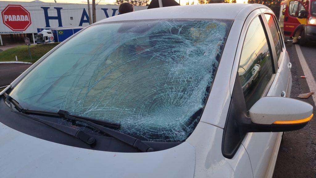 Segundo as informações, a vítima tentou atravessar a rodovia e foi atingida por um automóvel VW Fox. Com o impacto, a pedestre foi arremessada contra o para-brisas do carro, o qual ficou completamente estilhaçado. Pelas imagens do carro é possível notar a violência do impacto.