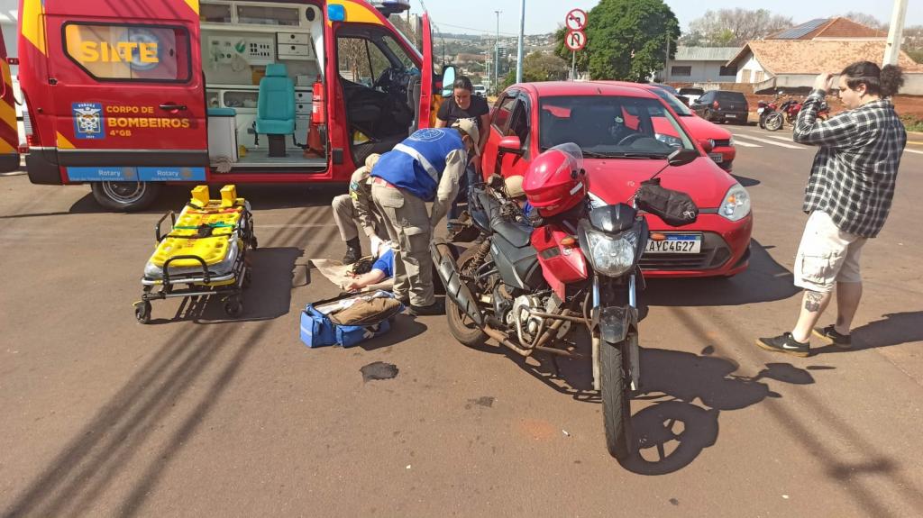 A colisão envolveu um veículo Ford Fiesta e uma moto Yamaha de 150 cilindradas.