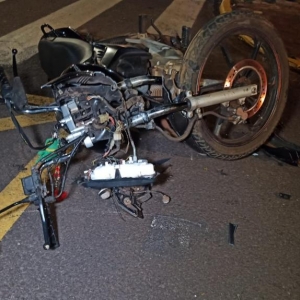 O veículo Fiat Uno e uma moto Honda CG Titan de 150 cilindradas placa de Toledo conduzida por uma mulher de 26 anos colidiram na noite de ontem (10) na Rua São João esquina com General Estilac Leal área central de Toledo.