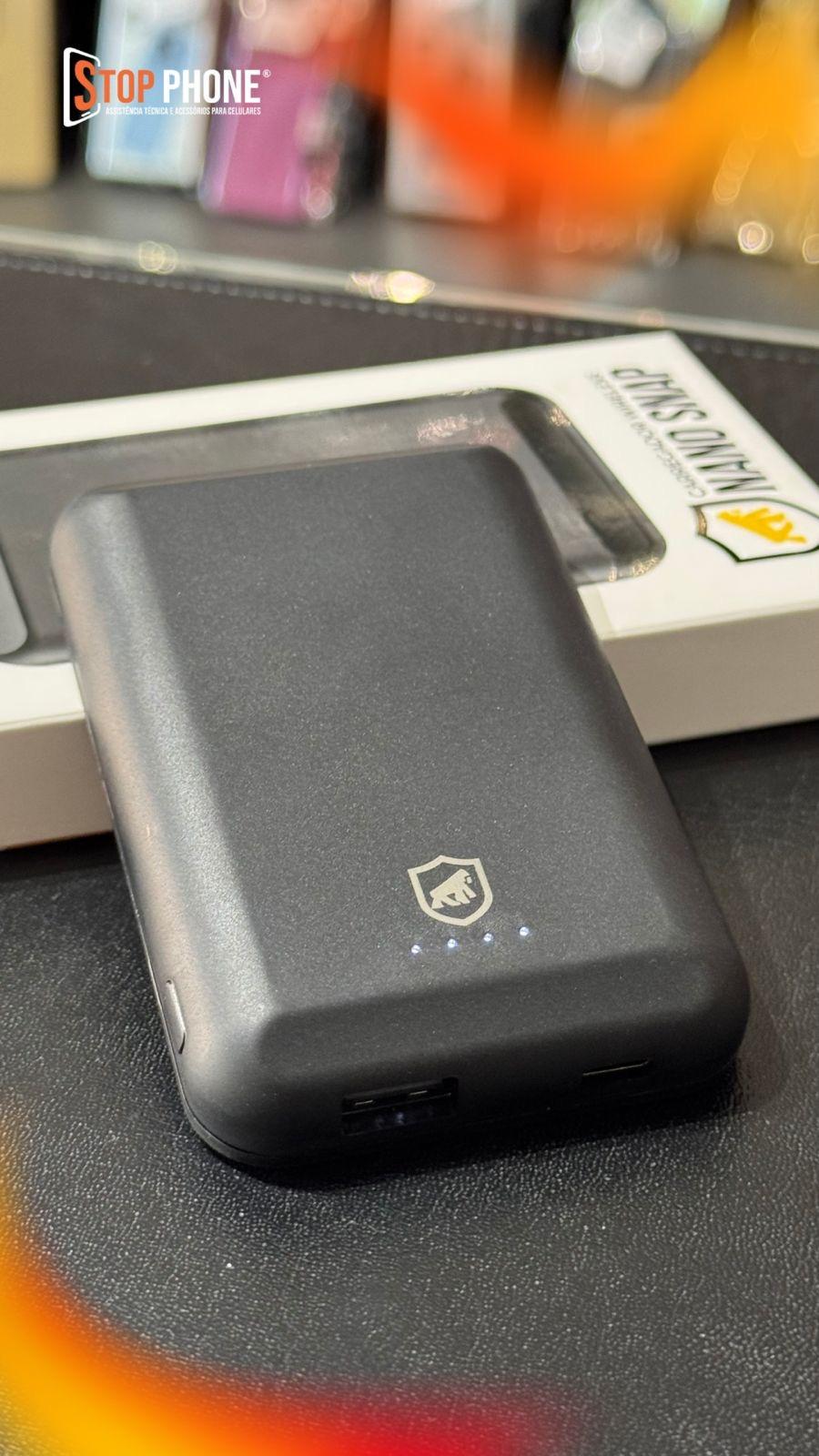 Chega de fios enrolados ou de ficar preso ao cabo na hora de carregar o celular. O Carregador Portátil Nano Snap Wireless da Gshield é a solução perfeita para quem busca praticidade e inovação.