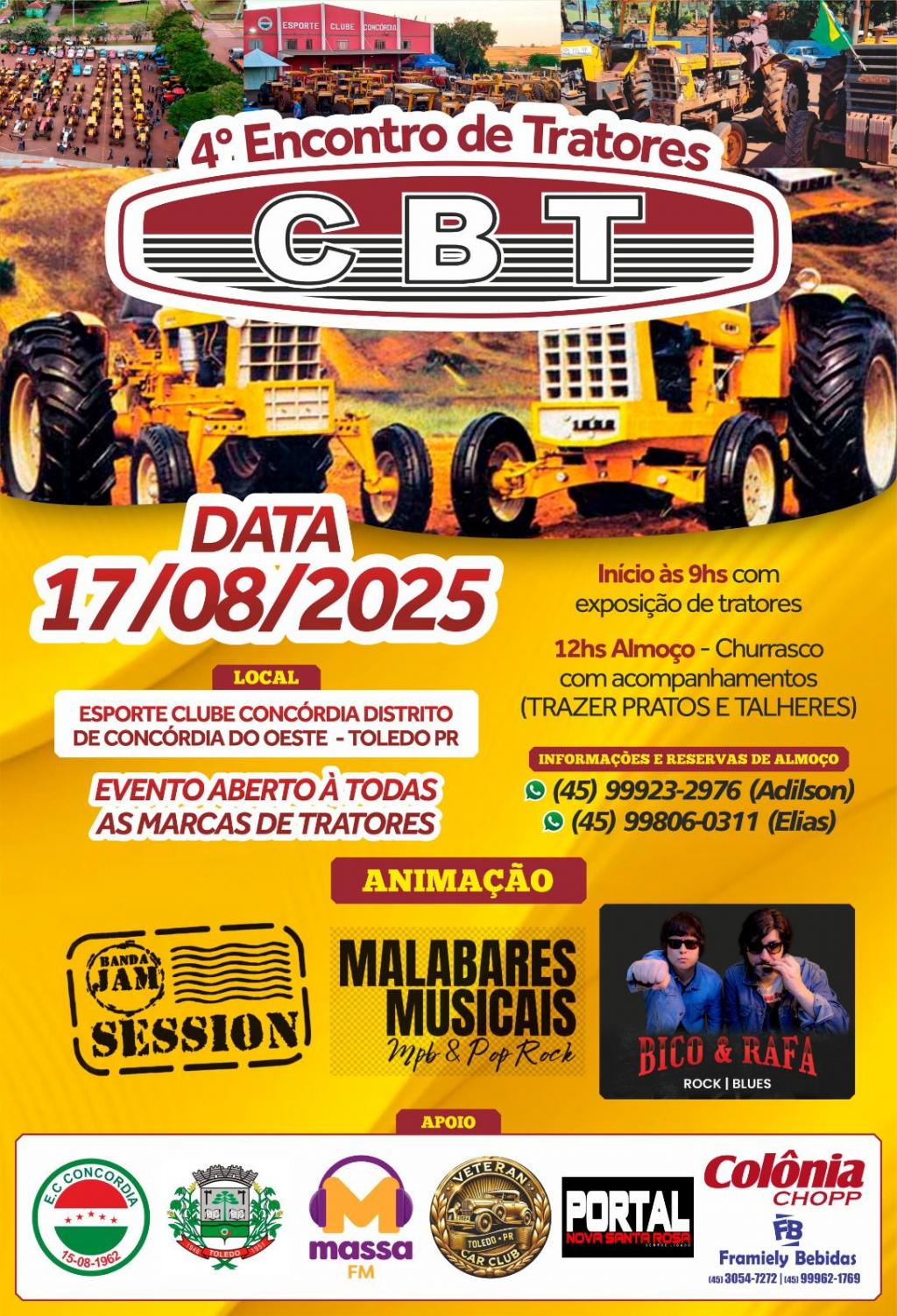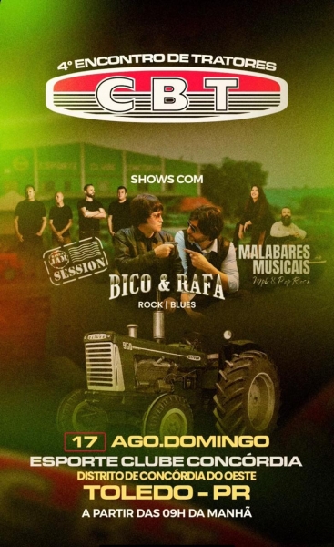 Consolidado como um dos principais encontros do gênero no Oeste do Paraná, o evento homenageia a trajetória da Companhia Brasileira de Tratores (CBT), marca que marcou época na agricultura brasileira pela força e durabilidade de suas máquinas.