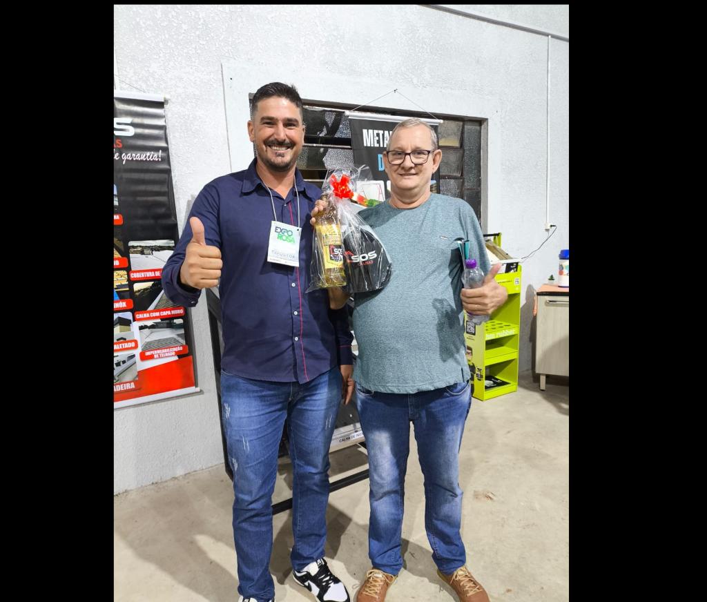 Nelson Rigel foi o ganhador do primeiro sorteio promovido pela S.O.S Calhas, realizado na noite desta sexta-feira (25) durante o primeiro dia da Expo Rosa 2025, no Parque de Exposições Joia do Oeste, em Nova Santa Rosa.