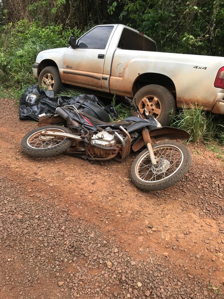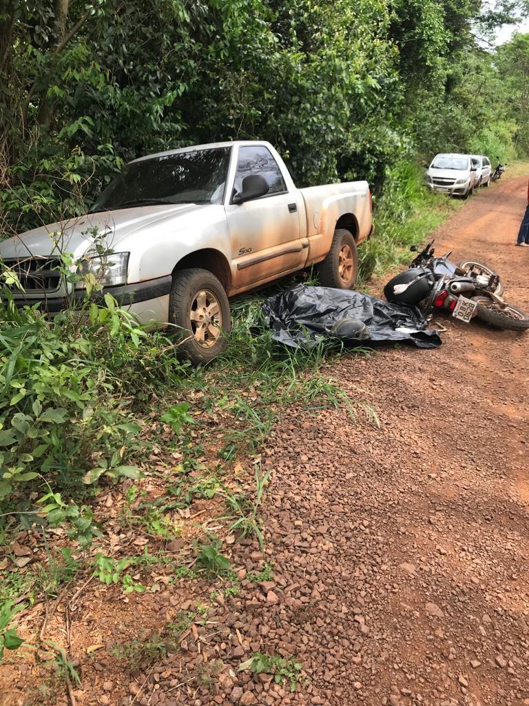 Uma queda de moto seguida de atropelamento foi registrada no início da tarde desta sexta-feira (13), por volta de 12h45, na estrada rural que liga as localidades de Linha Periquito e Linha Arara, interior de Marechal Cândido Rondon.