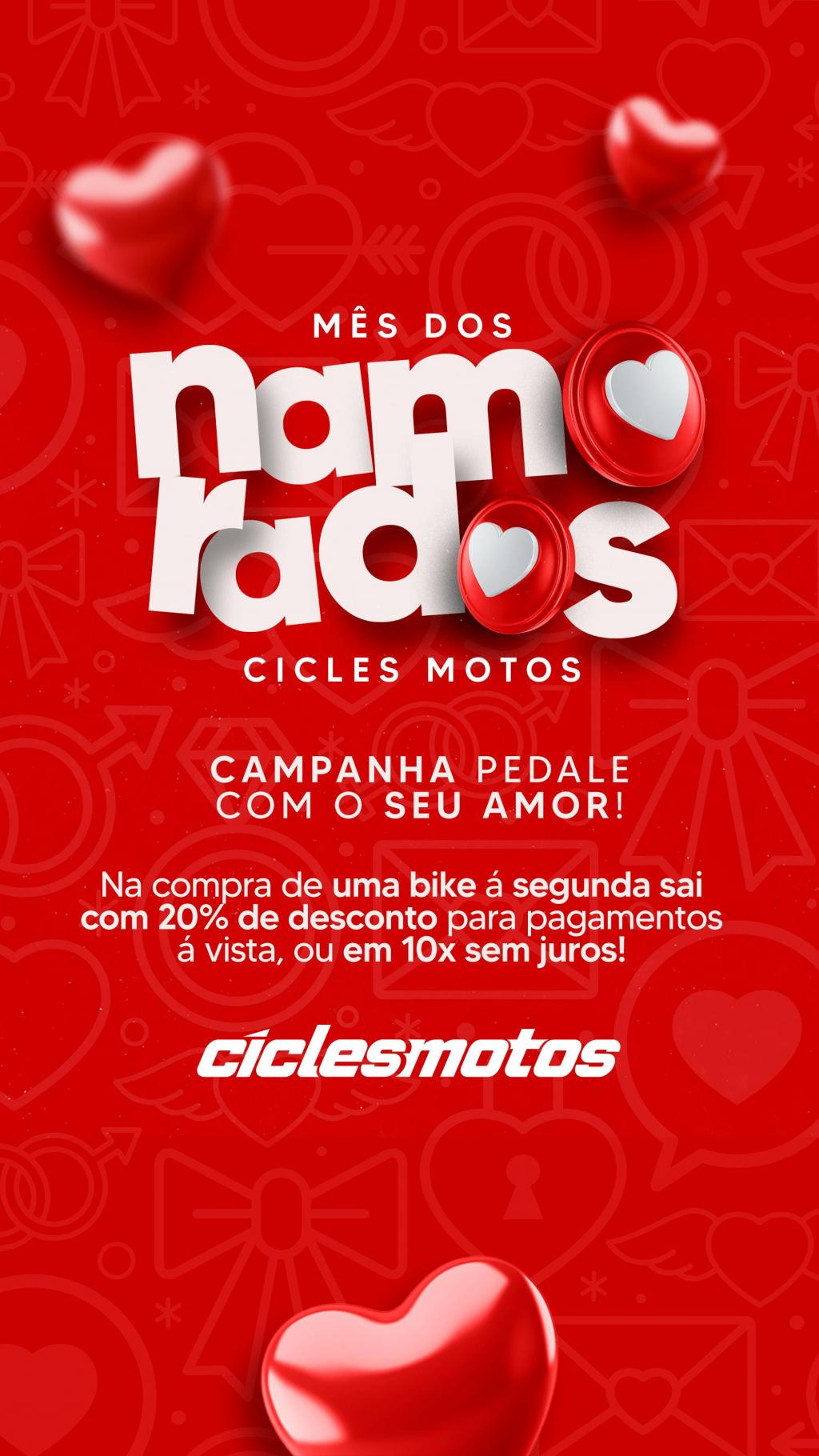 O amor está no ar — e também nas trilhas, estradas e ciclovias! Para celebrar o Mês dos Namorados, nós da Cicles Motos preparamos uma promoção imperdível para os casais que compartilham a paixão pelo pedal: