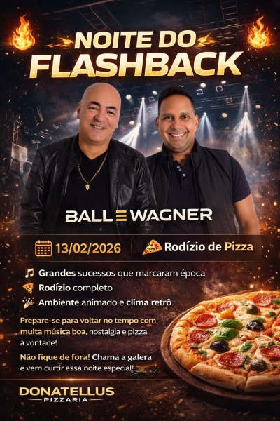 A Donatellus Pizzaria convida o público a reunir os amigos e garantir presença para curtir a Noite do Flashback, que promete muita música boa, animação e gastronomia de qualidade.