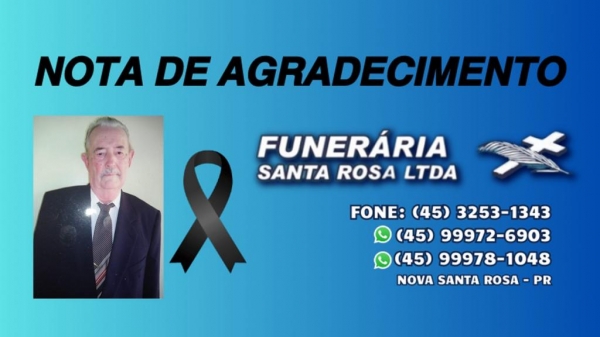 Aos pastores Eliseu Kelm e Wilson Wutzke, ao coral da Igreja, ao Dr. Juarez, à zeladora da Igreja, ao Telmo e Lori Hennig, ao Avelino Schulz, ao Prefeito Municipal Norberto Pinz, à Funerária Santa Rosa, aos vizinhos, parentes e amigos, à todos que enviaram flores, enfim à todas as pessoas pelas palavras de apoio e conforto neste momento de dor.