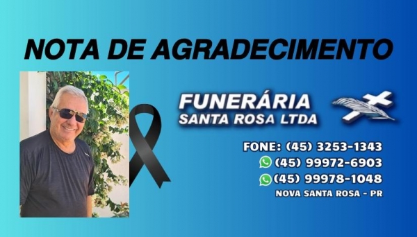 Ao Padre Neimar, ao grupo de canto da Igreja, ao hospital Bom Pastor, aos médicos e enfermeiras, aos motoristas da ambulância, a funerária Santa Rosa, aos parentes, vizinhos e amigos, enfim a todos que enviaram flores e coroas, um Deus lhes paguem.