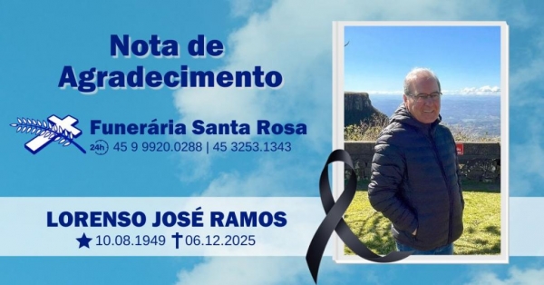 À Paróquia Santa Rosa de Lima, ao Padre Neimar, ao Grupo de Canto, à Intervent - Clínica de Hemodinâmicade Cascavel, à toda equipe do Supermercado Ruzza, à Funerária Santa Rosa e a todos os familiares e amigos que se fizeram presentes neste momento de despedida, a todos o nosso muito obrigado.