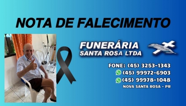 A esposa Geni e família de Alto Santa Fé, com pesar comunicam o falecimento do esposo, pai, sogro, avô e bisavô, Sr. Pedro Schütz, ocorrido hoje (25), aos 79 anos.