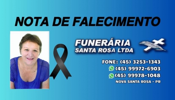 O corpo será velado a partir das 14h00 na Igreja Congregacional de Nova Santa Rosa e a partir das 09h00 de amanhã (20), haverá culto de corpo presente e logo após o sepultamento no cemitério de Nova Santa Rosa.