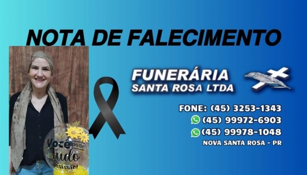 O esposo Juliano e os filhos, Lucas e Arthur Dorfschmidt e familiares, com pesar comunicam o falecimento da esposa e mãe, Simone Patricia Kerber Dorfschmidt, ocorrido hoje (17) aos 36 anos.