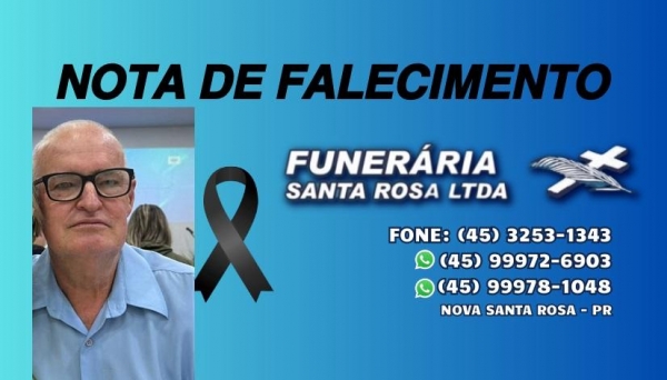 A esposa Gerda Biller e família de Cascavel e Planalto do Oeste, Nova Santa Rosa, com pesar comunica o falecimento do esposo, pai e avô, Sr. Valdir Biller, ocorrido ontem (25), aos 69 anos.