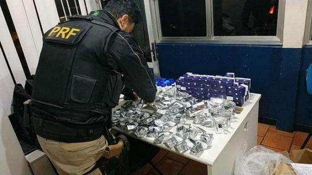Importados ilegalmente do Paraguai, os medicamentos eram transportados em um automóvel Renault Sandero, abordado por volta de 00h30, na BR-277.