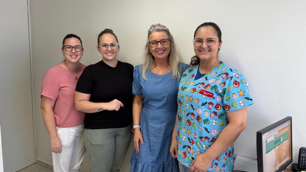 A secretária da pasta, Dra. Lilian Fischer Muller, acompanhada da diretora de Proteção à Saúde, Jéssica Schaedler, e da Chefe de Serviços de Assistência Farmacêutica, Paula Hein, deram, as boas-vindas para a nova profissional médica, que já iniciou os trabalhos. Trata-se de médica pediatra Dra. Thaisy Erika Deolindo Babinski, que foi contratada através do chamamento público nº 002/2025.