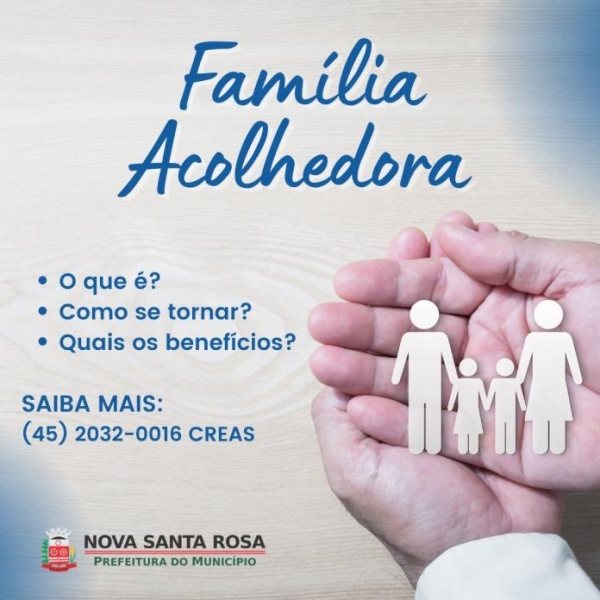 A Prefeitura de Nova Santa Rosa, por meio da Secretaria de Assistência Social e do CREAS, convida famílias e pessoas do município a participarem do Programa Família Acolhedora — uma iniciativa que oferece cuidado, carinho e proteção a crianças e adolescentes que, por decisão judicial, precisam ser temporariamente afastados de suas famílias de origem.
