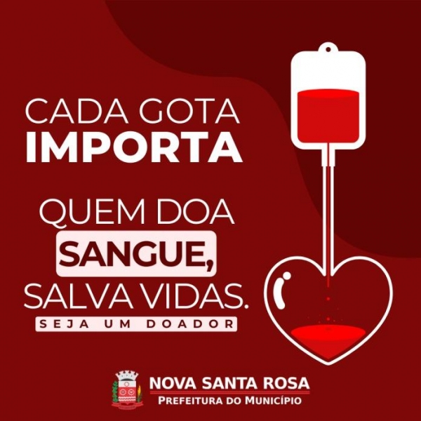 A Prefeitura de Nova Santa Rosa, por meio da Secretaria de Saúde, em parceria com o Grupo de Doadores de Sangue Missão Salva Vidas, informa que a caravana para doação de sangue ocorre no próximo sábado, dia 11 de maio.
