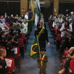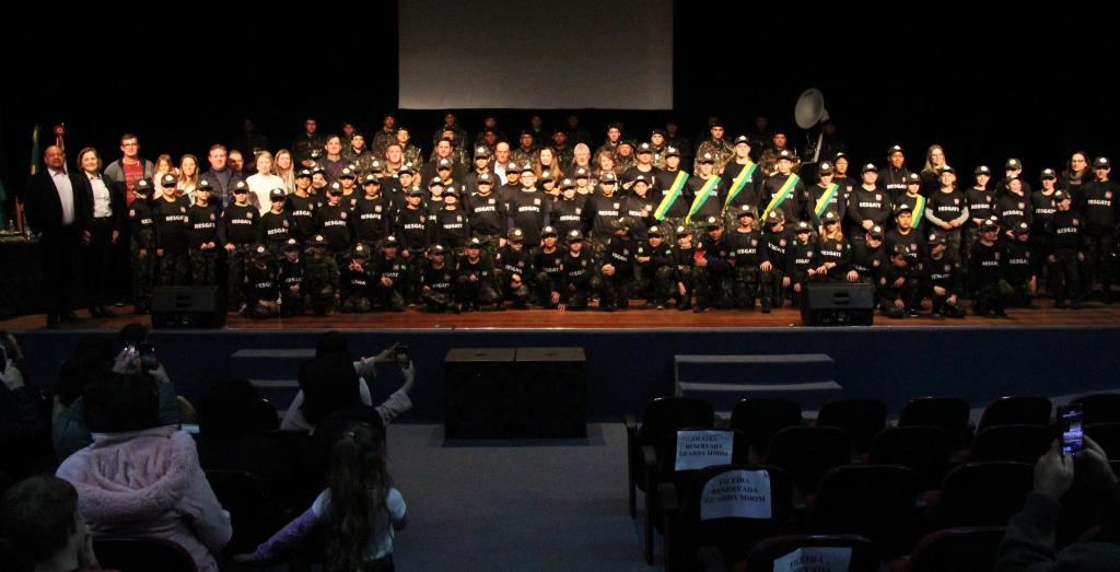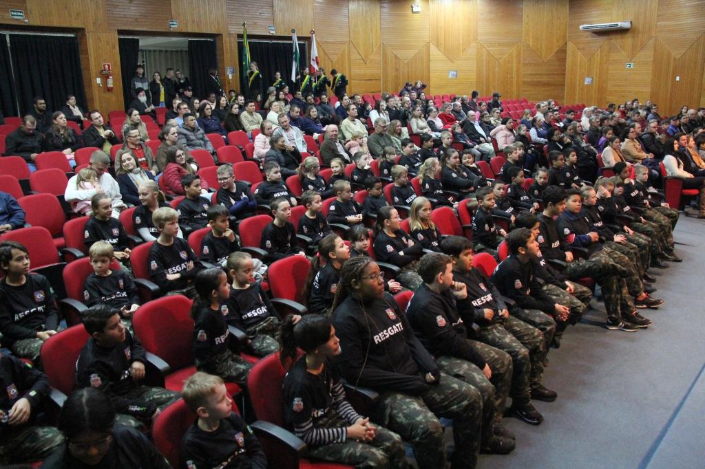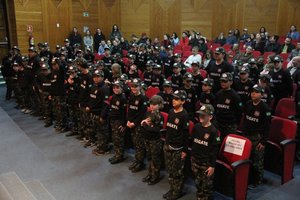 A Prefeitura de Nova Santa Rosa, por meio da Secretaria de Educação e Cultura, realizou na noite de quarta-feira (25), nas dependências do Teatro Municipal Gustavo Fischer, a solenidade de entrega de uniformes aos integrantes do grupo de Guarda-vidas Mirim. O kit é composto por calça, camiseta e boné.