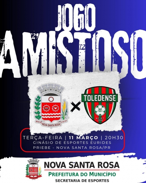 A equipe Nova Santa Rosa Futsal fará a sua estreia no ano em um jogo amistoso diante do Toledense, equipe que disputa a Série Bronze do Campeonato Paranaense de Futsal. A partida está marcada para terça-feira (11), amanhã portanto, a partir das 20h30, no Ginásio de Esportes Eurides Priebe.