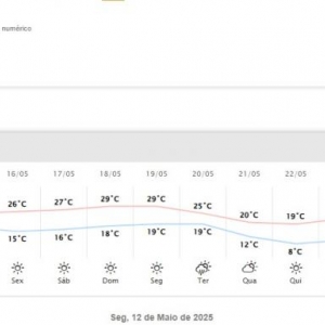 De acordo com o Simepar, a tendência para os próximos dias é de continuidade do tempo estável, com temperaturas oscilando entre mínimas de 11°C e máximas de 29°C.