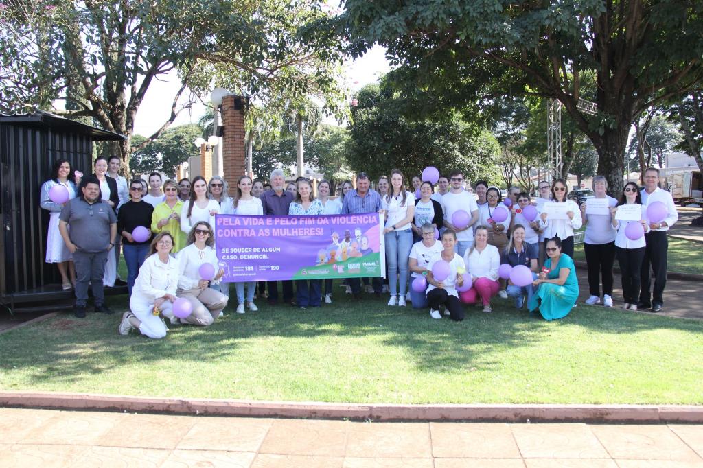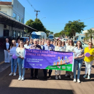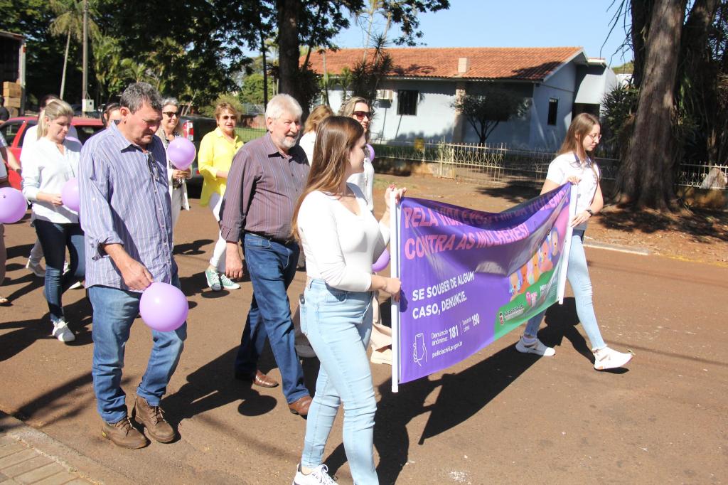 A mobilização reuniu autoridades municipais, representantes de conselhos e entidades, além de mulheres da comunidade. A caminhada teve início em frente ao CRAS (Centro de Referência de Assistência Social) e seguiu pela Rua Guarani até a Praça da Bíblia, com o objetivo de sensibilizar a população sobre a importância do enfrentamento à violência de gênero.