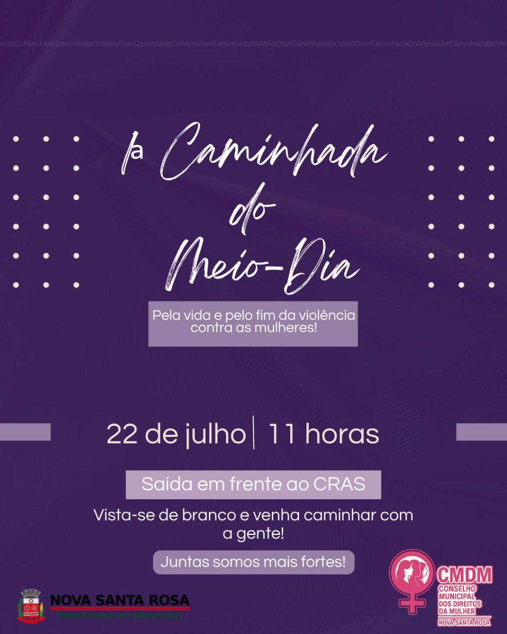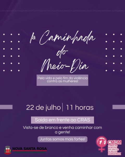 Nova Santa Rosa se unirá ao movimento estadual de enfrentamento à violência contra as mulheres com a realização da 1ª Caminhada do Meio-Dia, marcada para a próxima terça-feira (22).