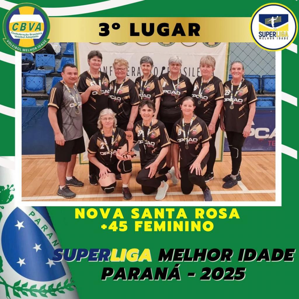 Nova Santa Rosa sediou no último final de semana, a Superliga Melhor Idade Paranaense 2025, competição oficial da Confederação Brasileira de Voleibol Adaptado (CBVA) e que foi realizada em parceria com a prefeitura, por meio da Secretaria de Esportes. O evento reuniu equipes de várias cidades do Paraná, em dias de integração, saúde e esporte.