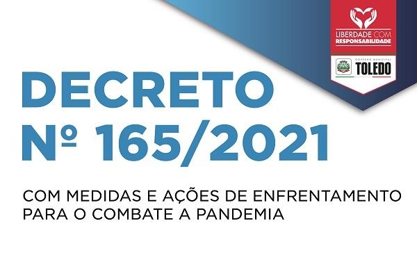 A Prefeitura de Toledo publicou, nesta quinta-feira (17), o Decreto nº 165/2021 prorrogando as medidas de combate ao coronavírus. Em relação à regulamentação que já vinha sendo praticada, apenas a liberação de atividades aos domingos. As medidas valem até a próxima quinta-feira (24).