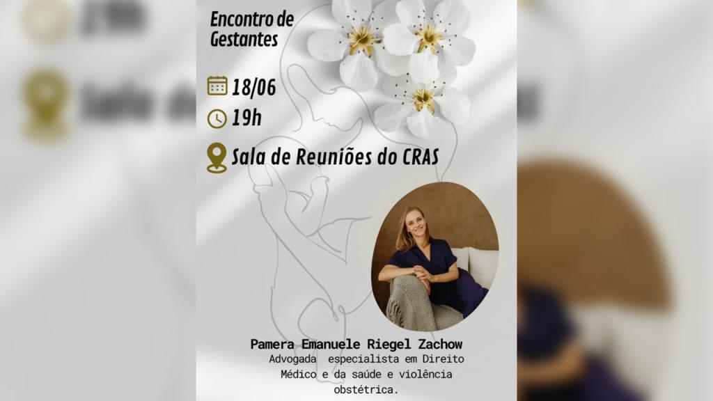 Amanhã, quarta-feira (18), acontecerá mais um Encontro de Gestantes, a partir das 19h, nas dependências da sala de reuniões do CRAS (Centro de Referência de Assistência Social) em Nova Santa Rosa. Desta vez, com a advogada Pamera Emanuele Riegel Zachow, que é especialista em direito médico e da saúde e violência obstétrica.