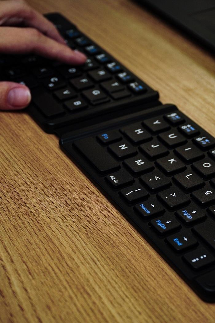 Com um design dobrável e ultra compacto, ele cabe facilmente na bolsa ou no bolso, tornando-se o acessório ideal para quem trabalha em movimento, viaja com frequência ou simplesmente deseja um teclado portátil para maior comodidade no dia a dia.