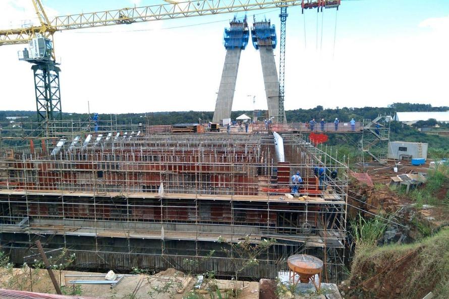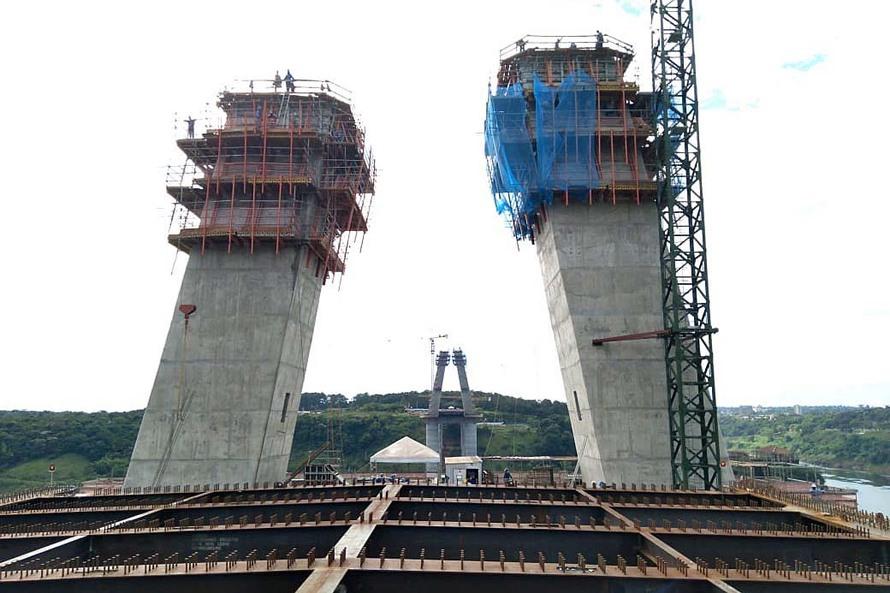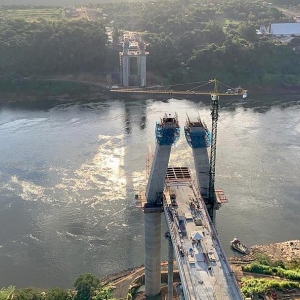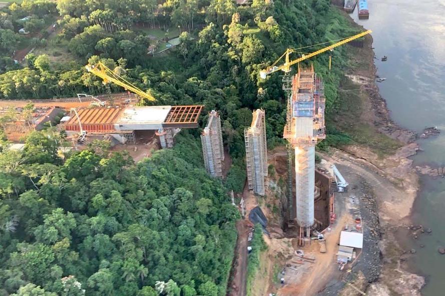 Do lado paraguaio, por sua vez, a estimativa é que feche março com 88 metros de altura do mastro concretado. No apoio 01, informa o boletim, houve a continuidade da execução do segundo trecho concretado, de 20,50 metros de largura e 28,12 metros de comprimento. Feito concreto armado, tem peso aproximado de 1.100 toneladas.