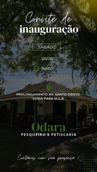 Inaugura amanhã, dia 08 de junho, a partir das 14h00, em Nova Santa Rosa, Odara Pesqueiro e Petiscaria, a mais nova opção em lazer para você aproveitar com sua família e amigos.