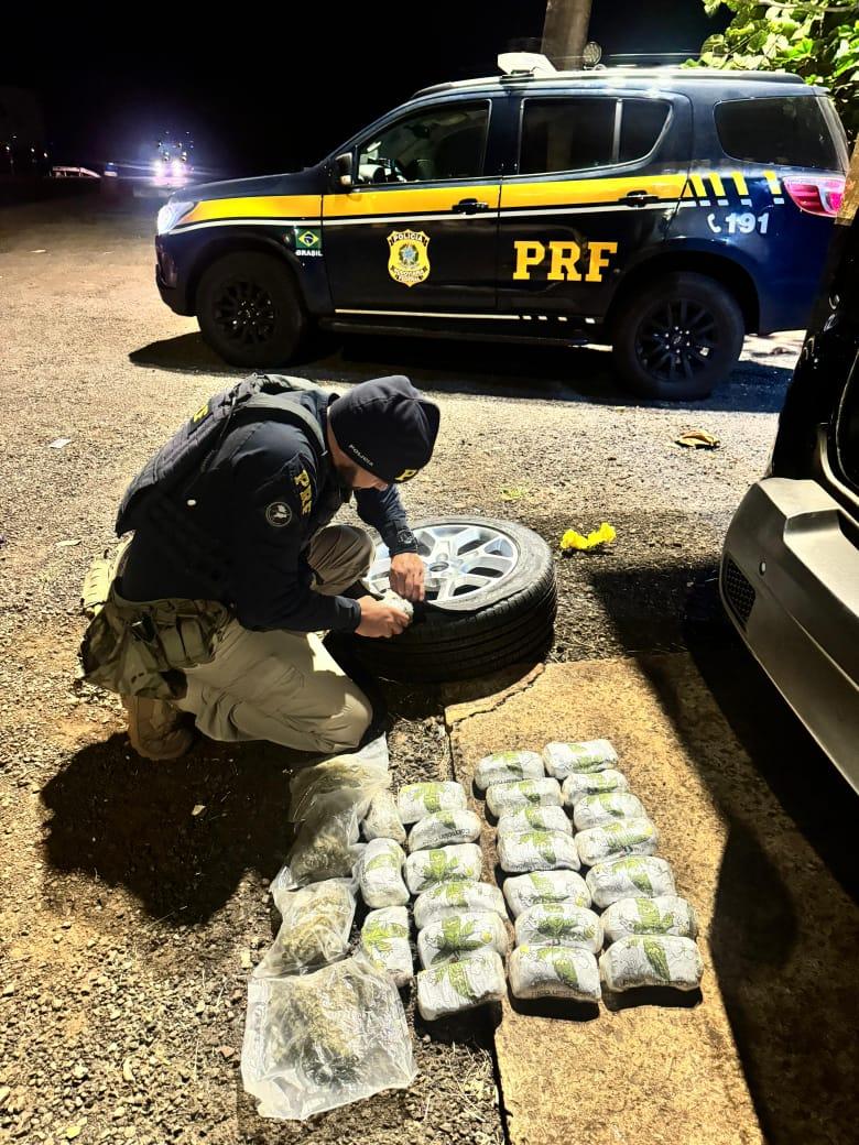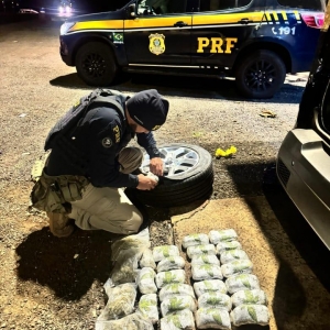 Na madrugada de ontem (1º), no km 642 da BR-277, em Céu Azul, a PRF abordou um veículo com placas do Rio Grande do Sul. No interior do automóvel foram localizados diversos fardos de maconha ocultos em compartimentos como portas, teto e porta-malas. O condutor, de 33 anos, e a passageira, de 24, foram presos. A droga totalizou 60 kg e teve como origem a cidade de Foz do Iguaçu.
