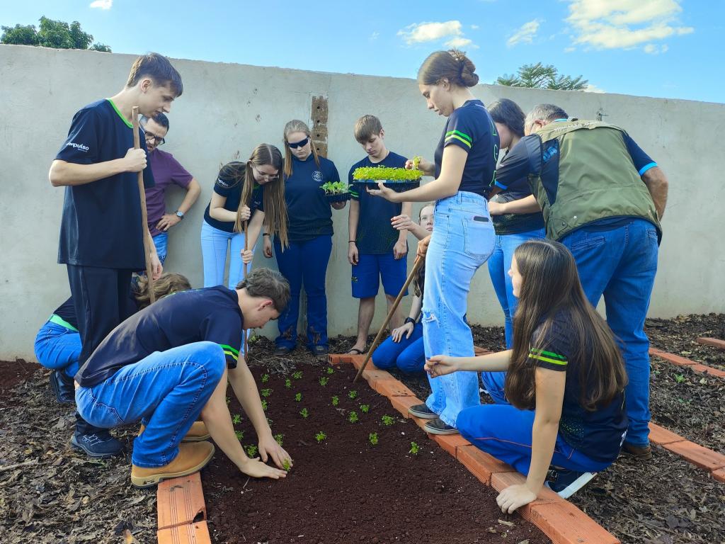 A atividade contou com a participação dos alunos e professoras do Projeto Viver e também dos estudantes do 2º ano do Curso Técnico em Agronegócio do Colégio Estadual Marechal Gaspar Dutra.